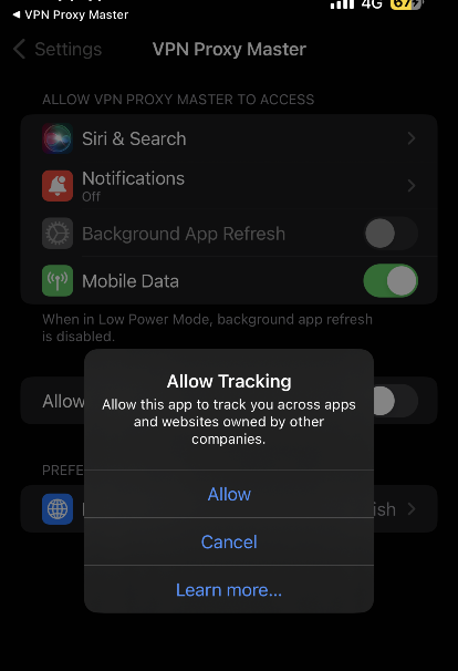 - 7) After selecting the ALLOW option, please pay attention to see if the ALLOW TRACKING displayed in the red grid is activated (shown in green)(This step is only for IOS)